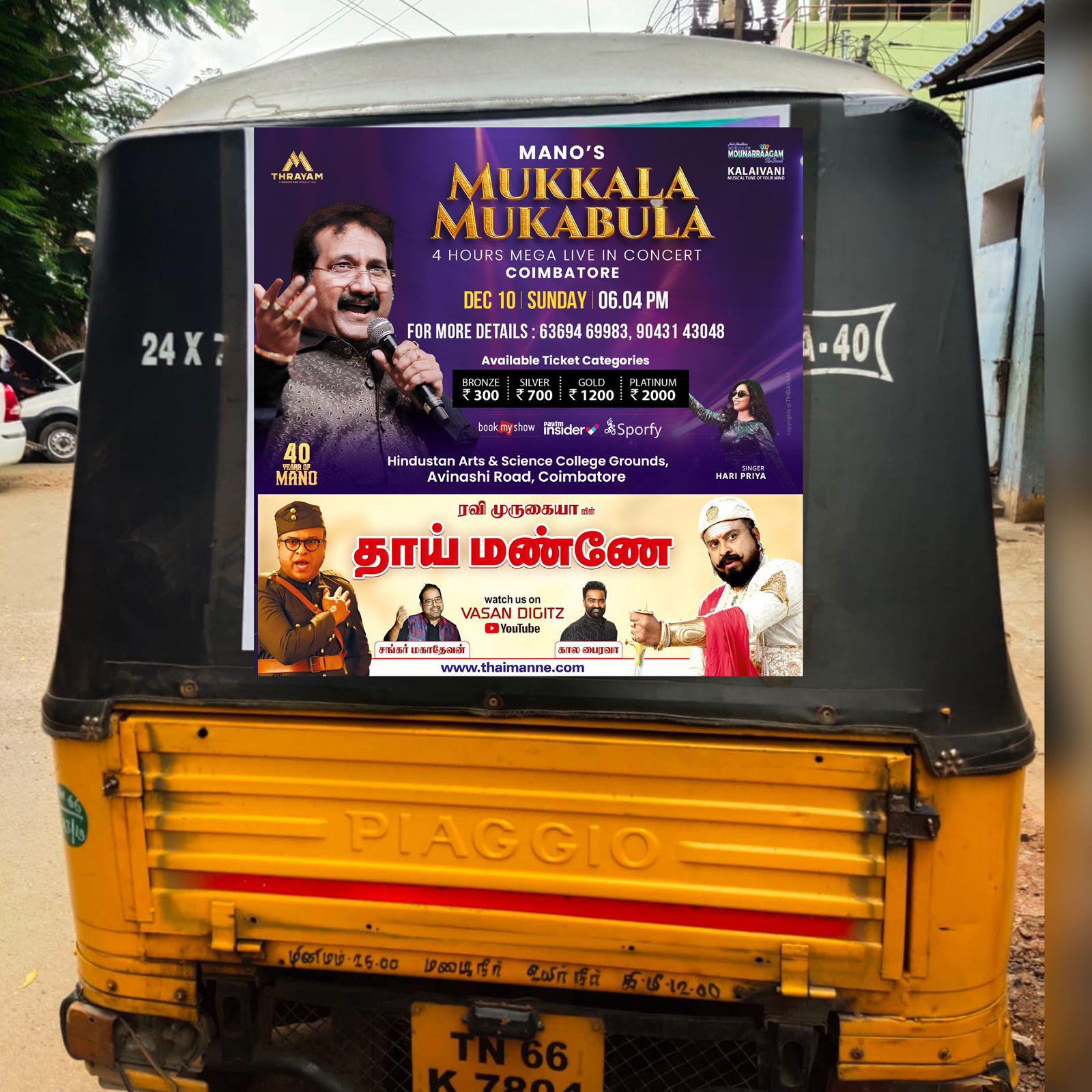 Reach your audience in every corner of the city with auto branding and promotions. Ideal for local brand awareness, product launches, and political campaigns — cost-effective and high visibility.