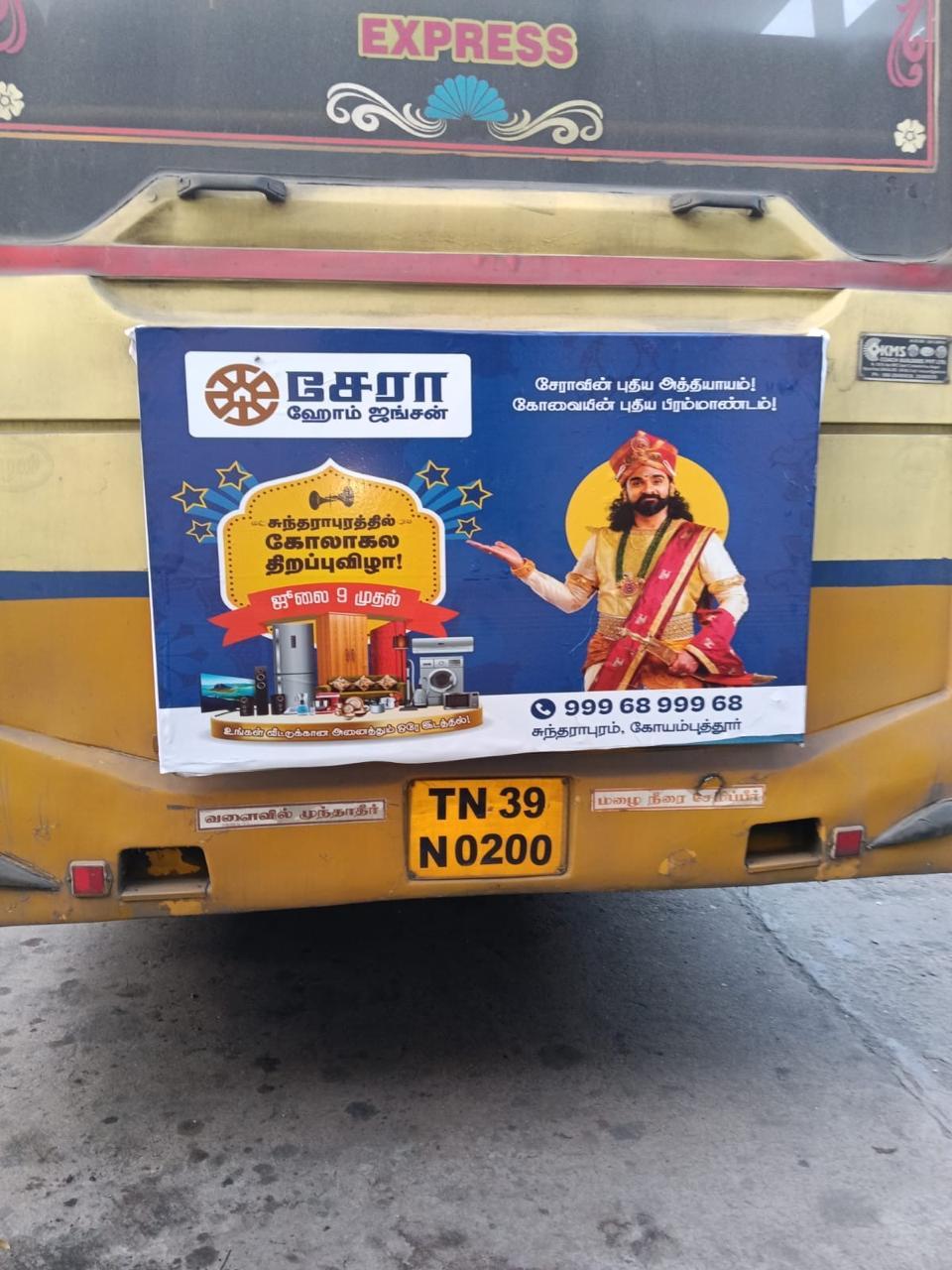 Advertise your brand on moving buses across Coimbatore. Bus advertising ensures maximum reach and exposure among daily commuters and travelers