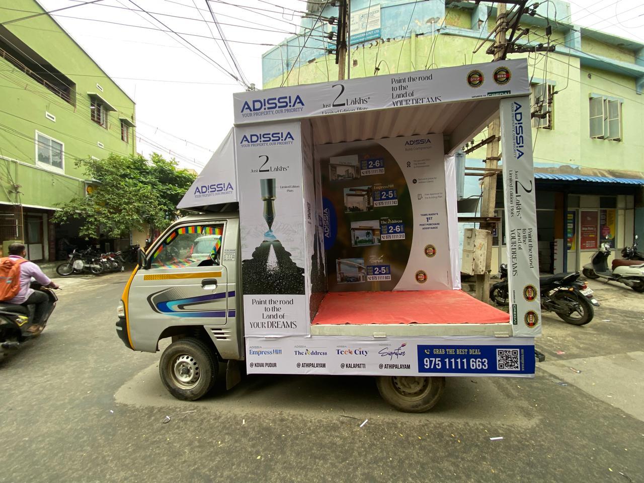 Maximize your brand exposure with L-shape van advertising. Perfect for roadshows, retail promotions, and outdoor marketing with an impactful side display.